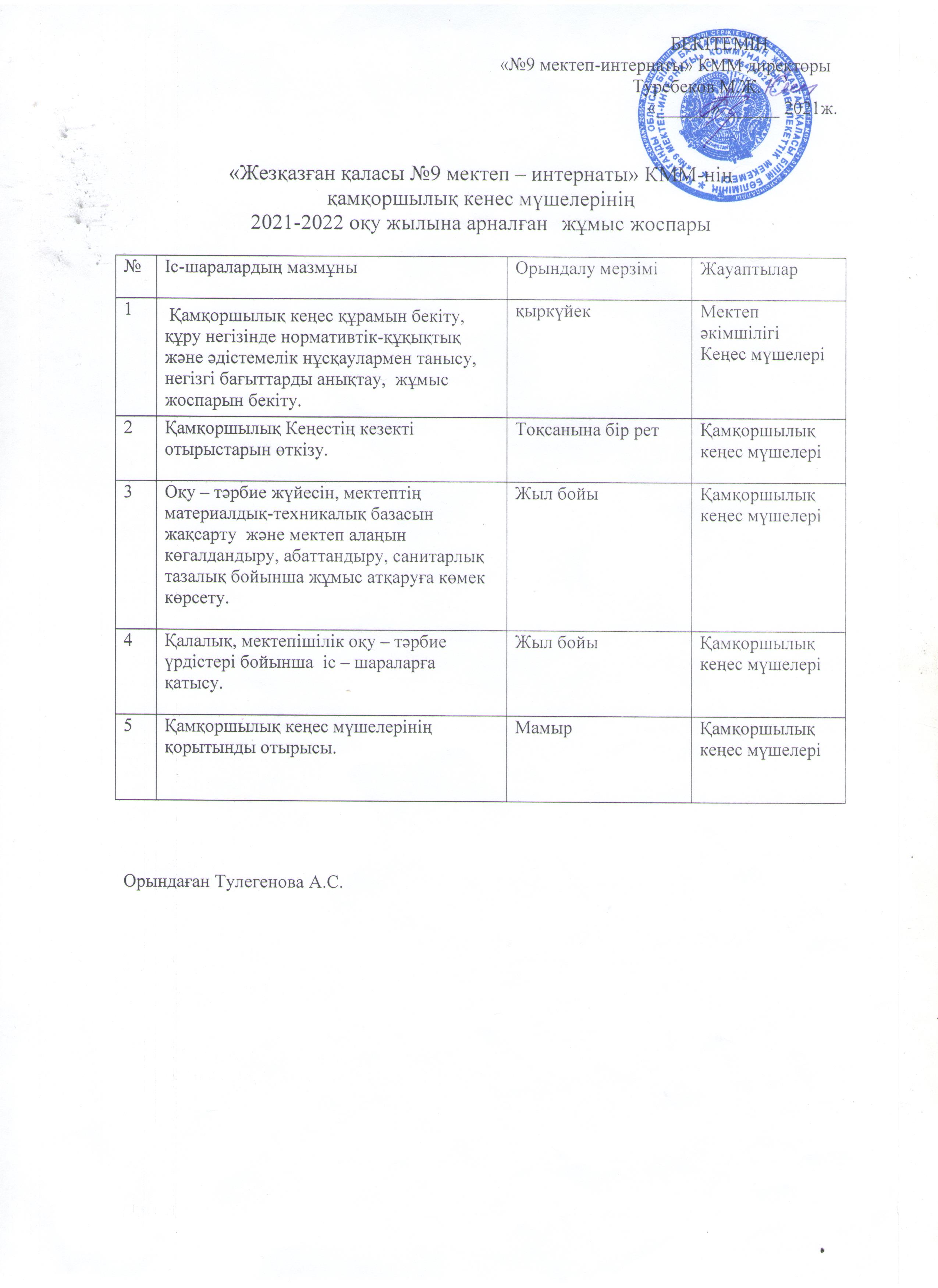 Қамқоршылық кеңестің жоспары